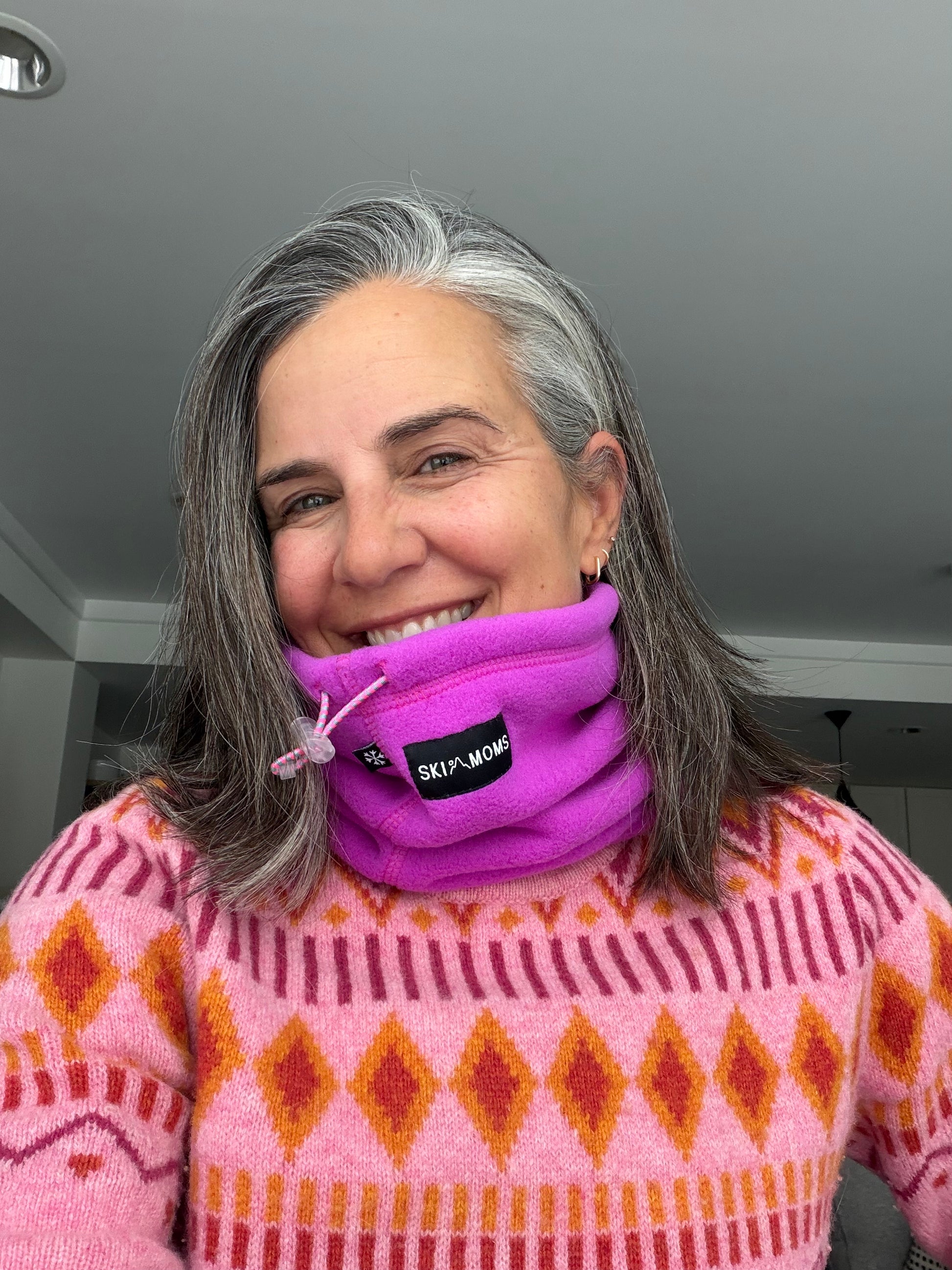 We love these Low Pile Neckwarmers made of recycled fuzzy Polartec fleece with a convenient bungee cord to transform your neckwarmer into a hat with just a cinch! Finished off with our custom Ski Mom logo.